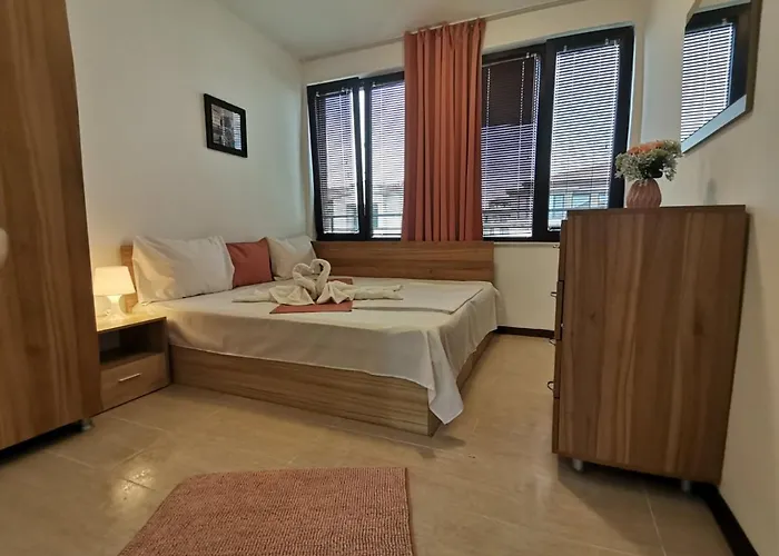 Rose Apartment - Green Life Beach Resort Sozopol położony jest w dzielnicy Kavatsi Beach, 52 min jazdy od lotniska Burgas. 1-pokojowy apartament zapewnia basen oraz taras z widokiem na basen.